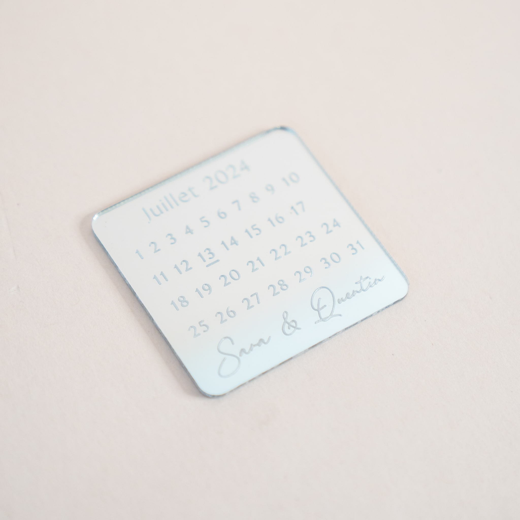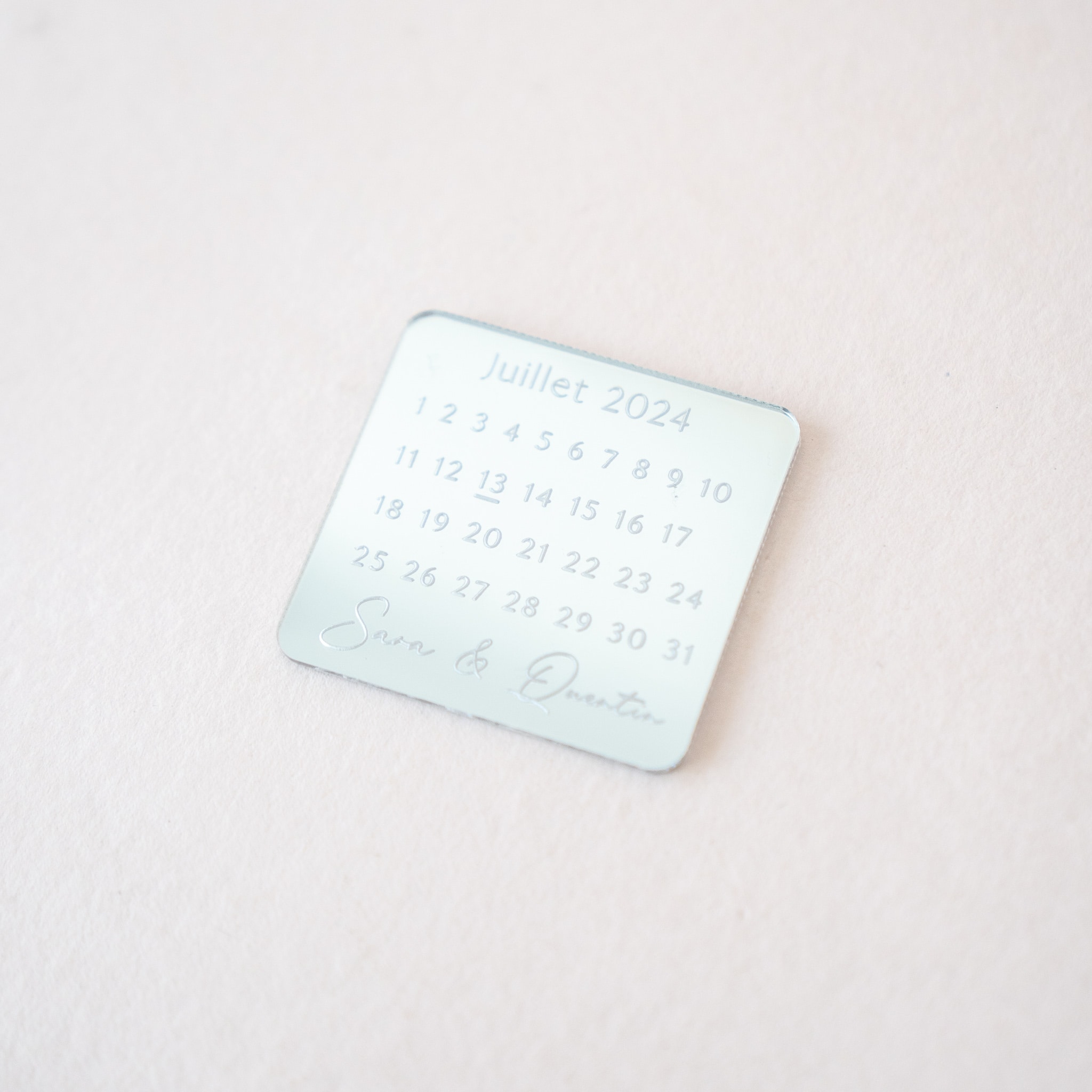 Sublimes aimants SAVE THE DATE personnalisés en plexiglass .