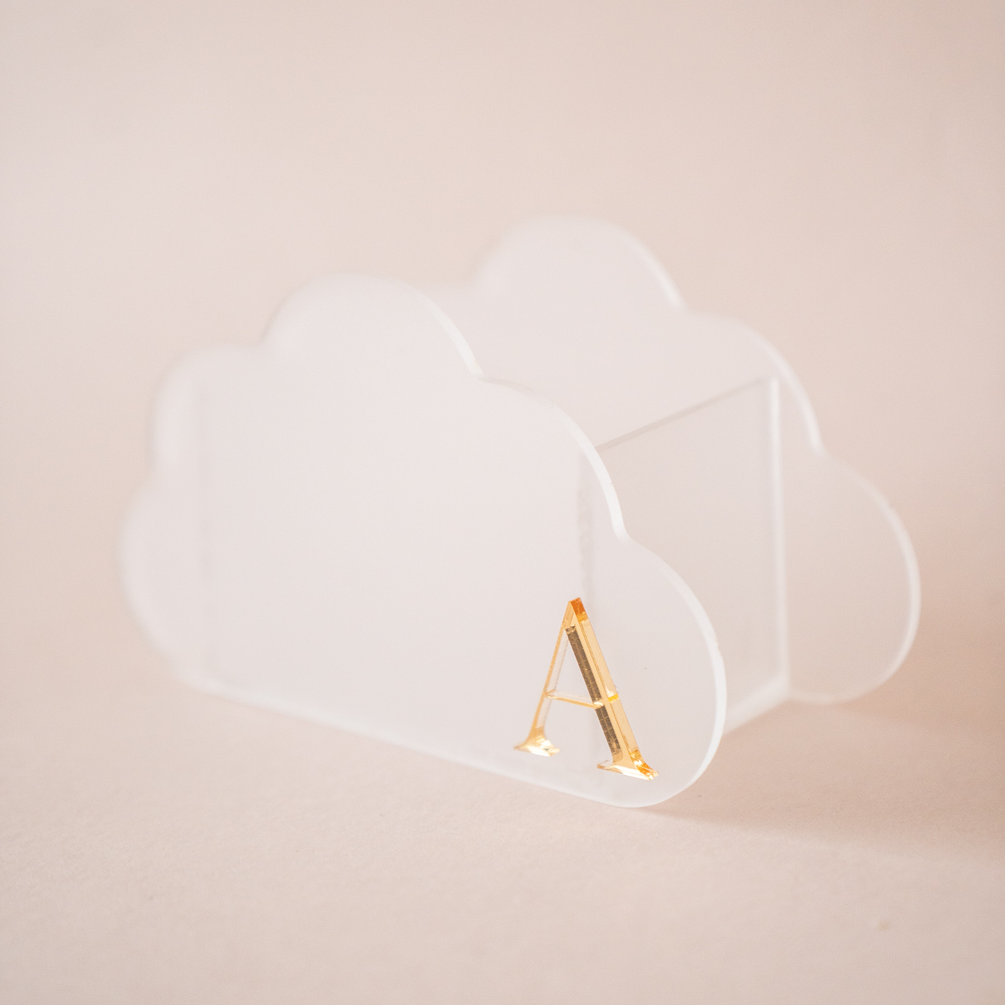 Sublime boite cadeau nuage personnalisée en plexiglas givré avec son initiale en 3D doré.