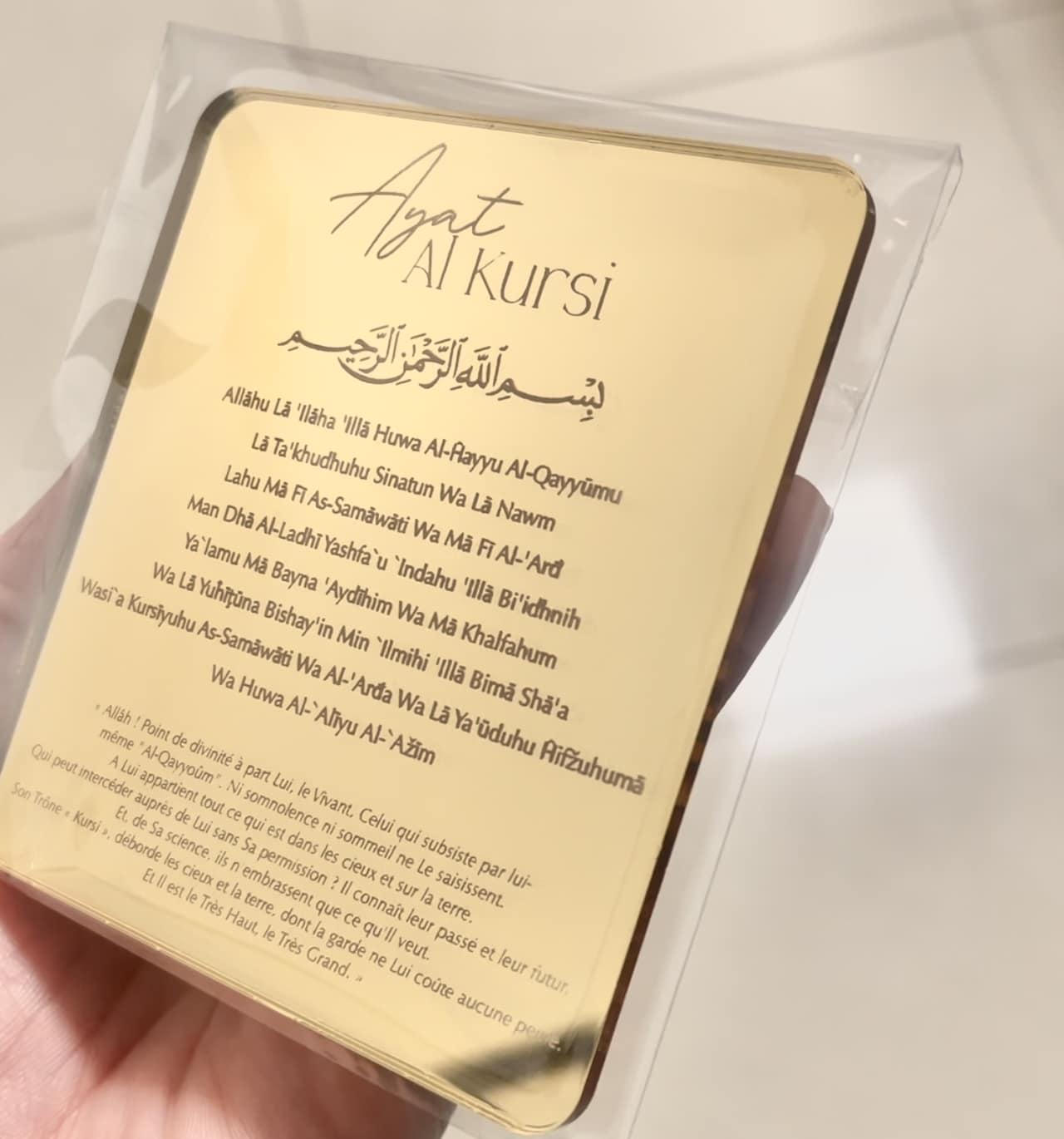 Sourate Ayat Al Kursi décorative en plexiglas miroir or.
