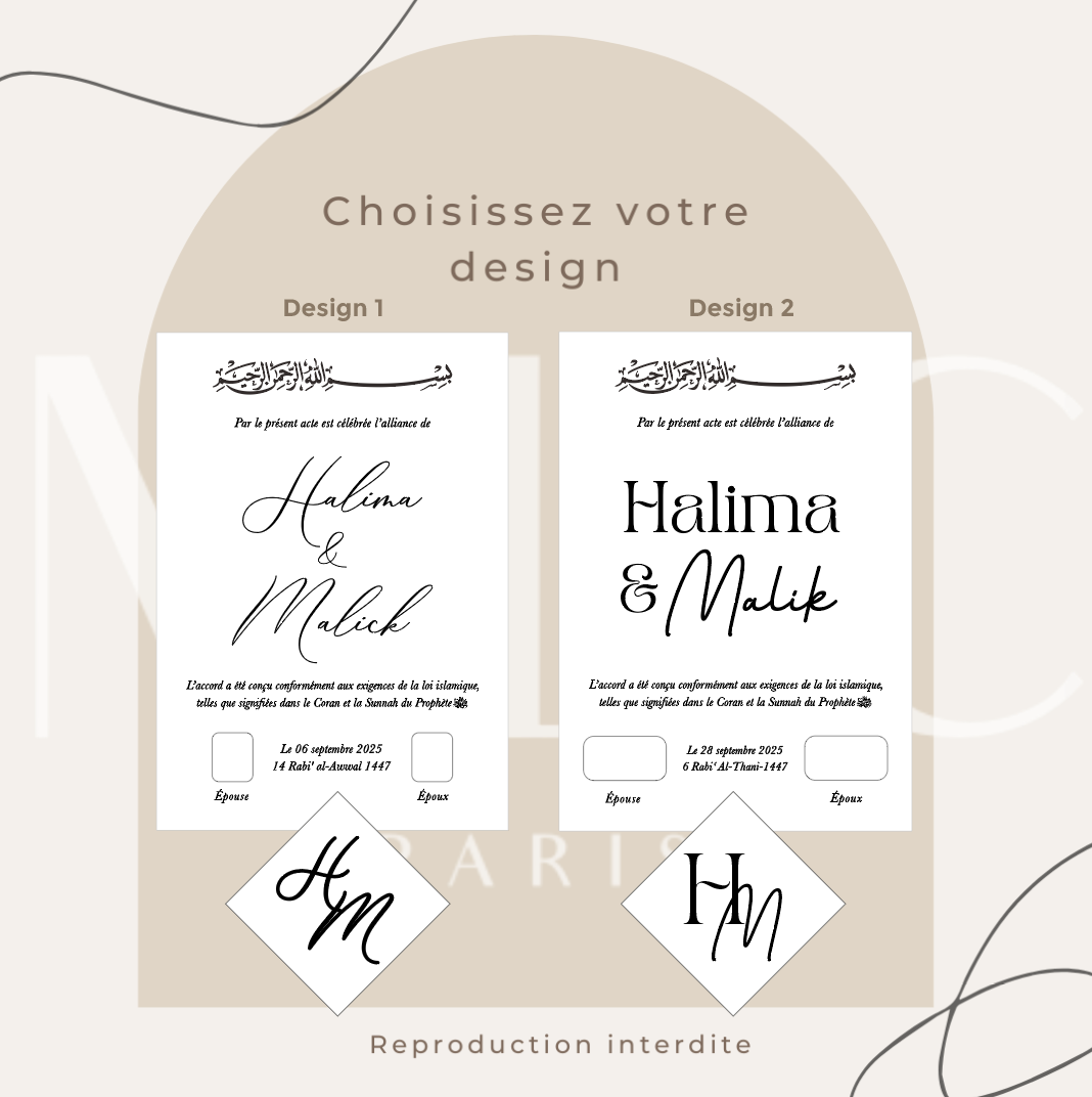 Le texte sera celui indiqué sur notre design pour le modèle islamique. Pour un modèle laïque ou autre indiquez en plus votre texte ci dessous. Le « bismillah » en arabe sera automatiquement supprimé pour un texte sur mesure.