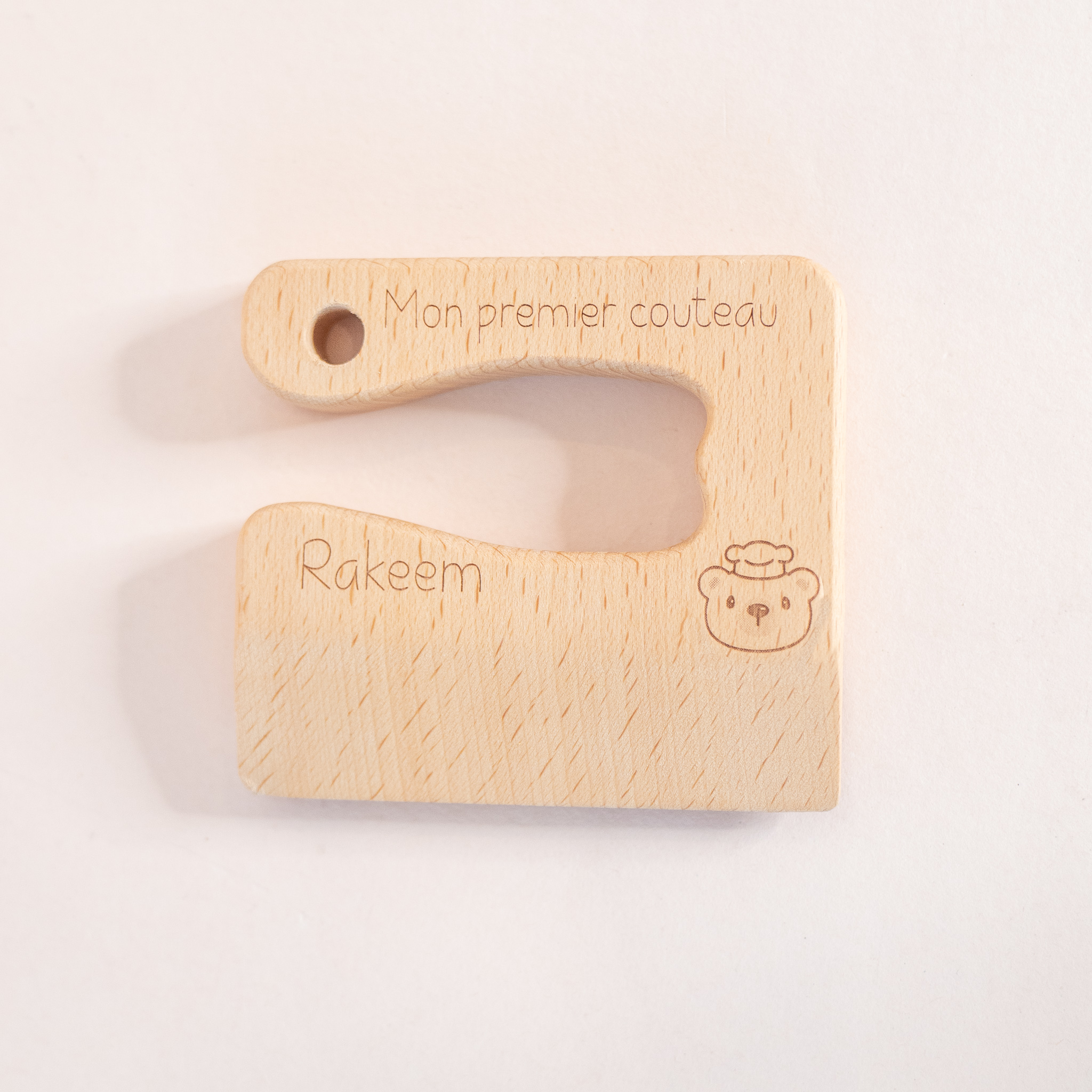 Couteau d’apprentissage Montessori personnalisé en bois pour les plus jeunes enfant (dès un an).