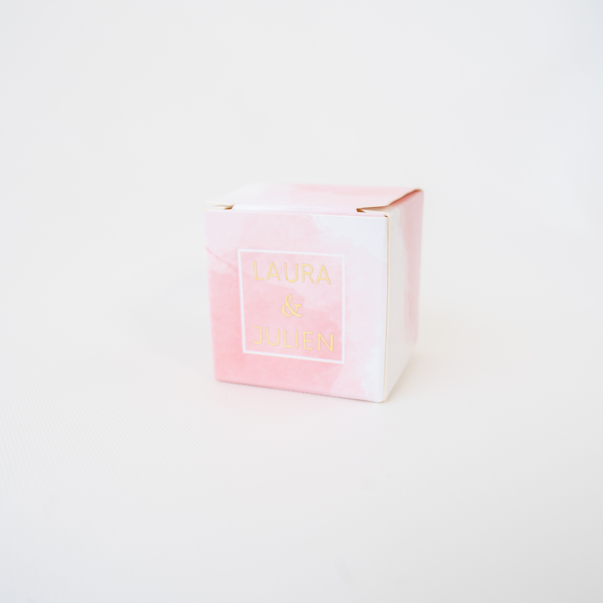 Laissez-vous séduire par son design aquarelle blanc et rose poudré et remplissez-la de vos gourmandises préférées ! Minimum 20 unités.