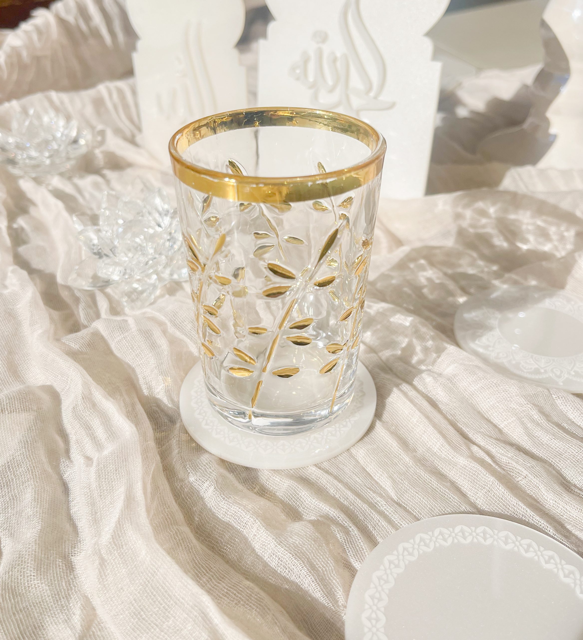 Dessous de verre à thé blanc perlé – motif orient (x2)