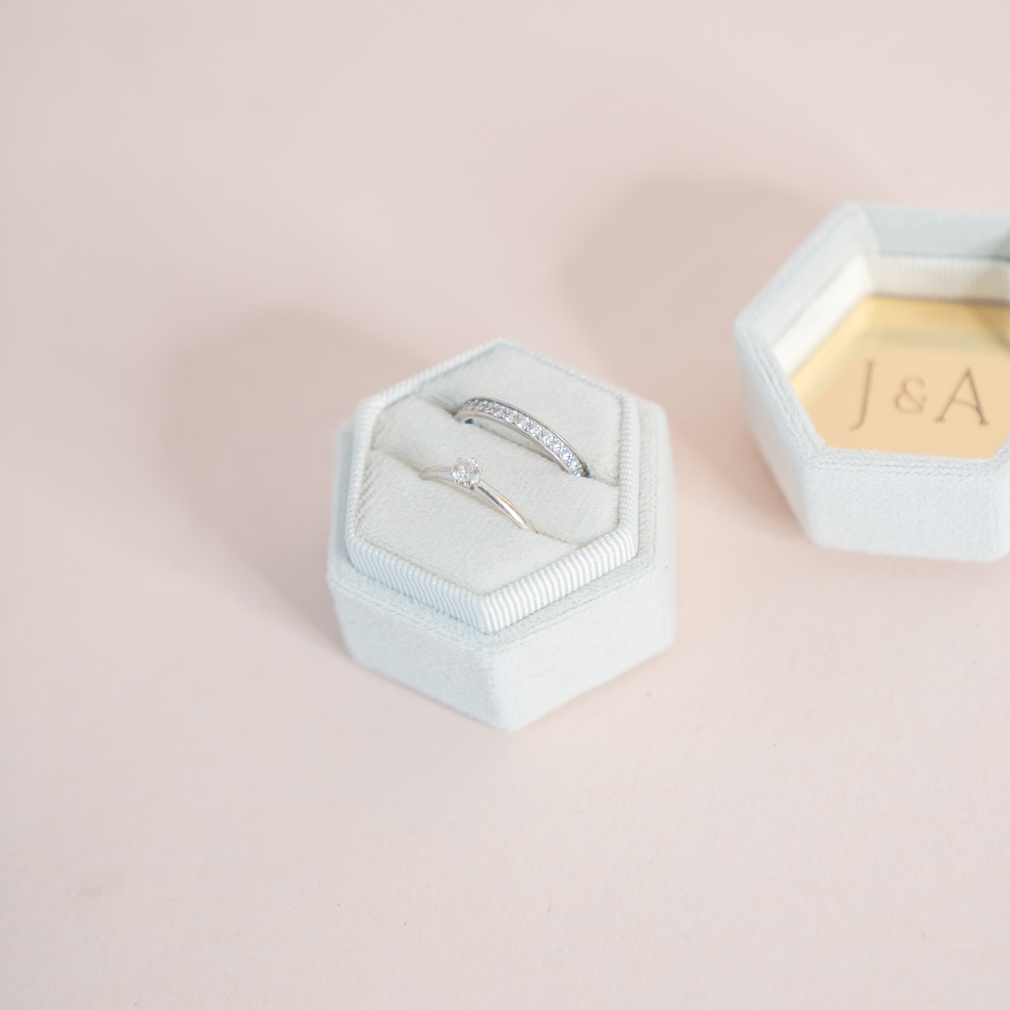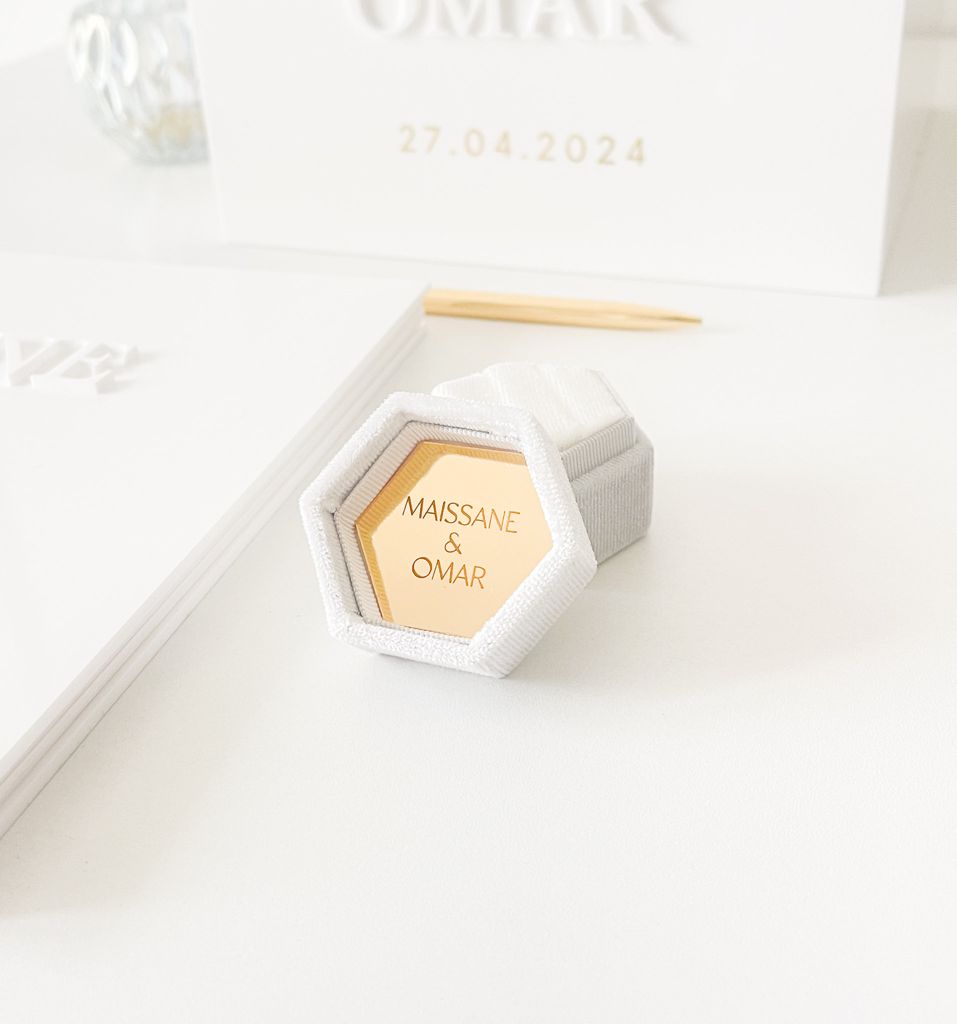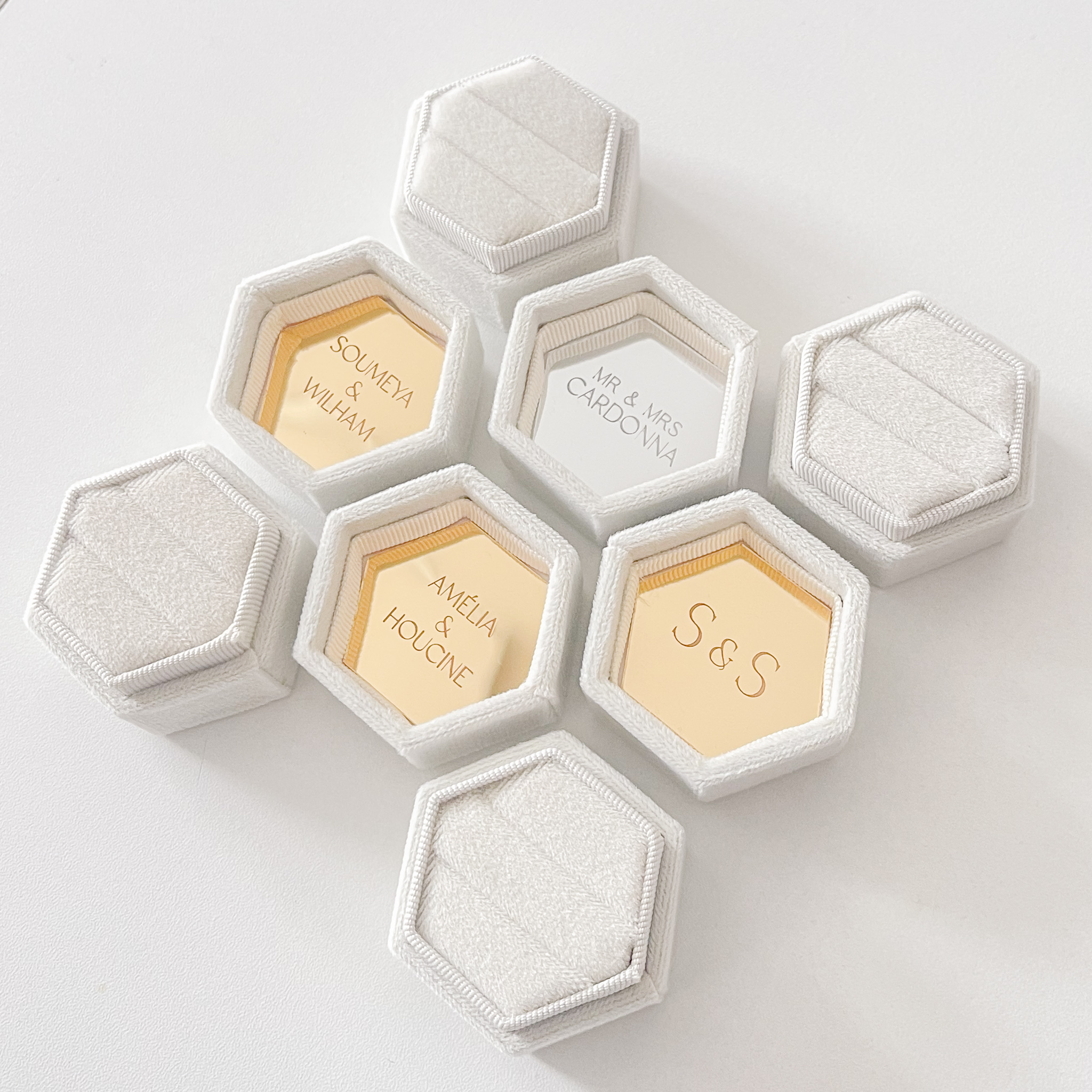 Écrin alliances personnalisé hexagonal