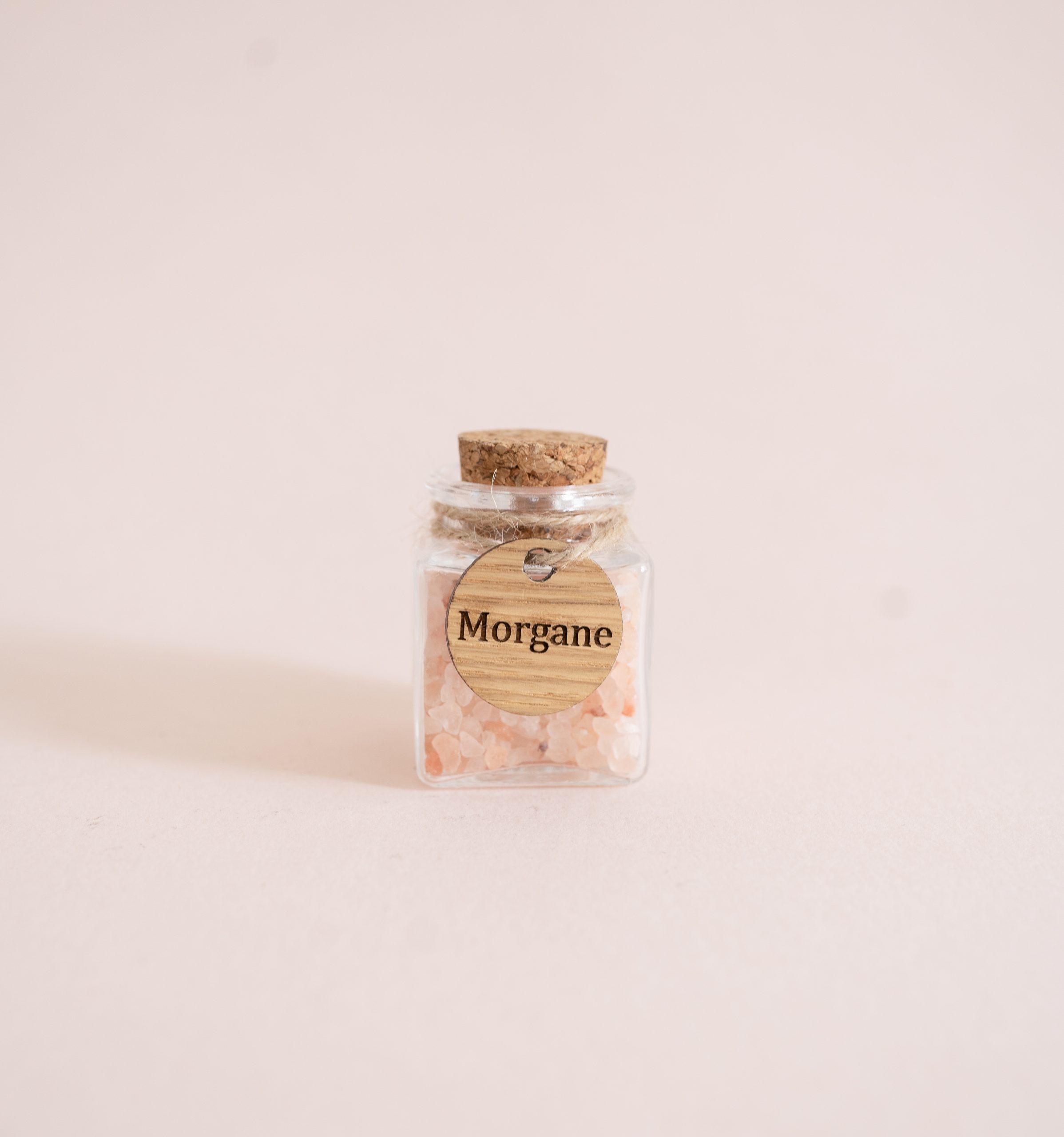 Nos fioles de sel roses sont assemblées avec délicatesse par nos soins.