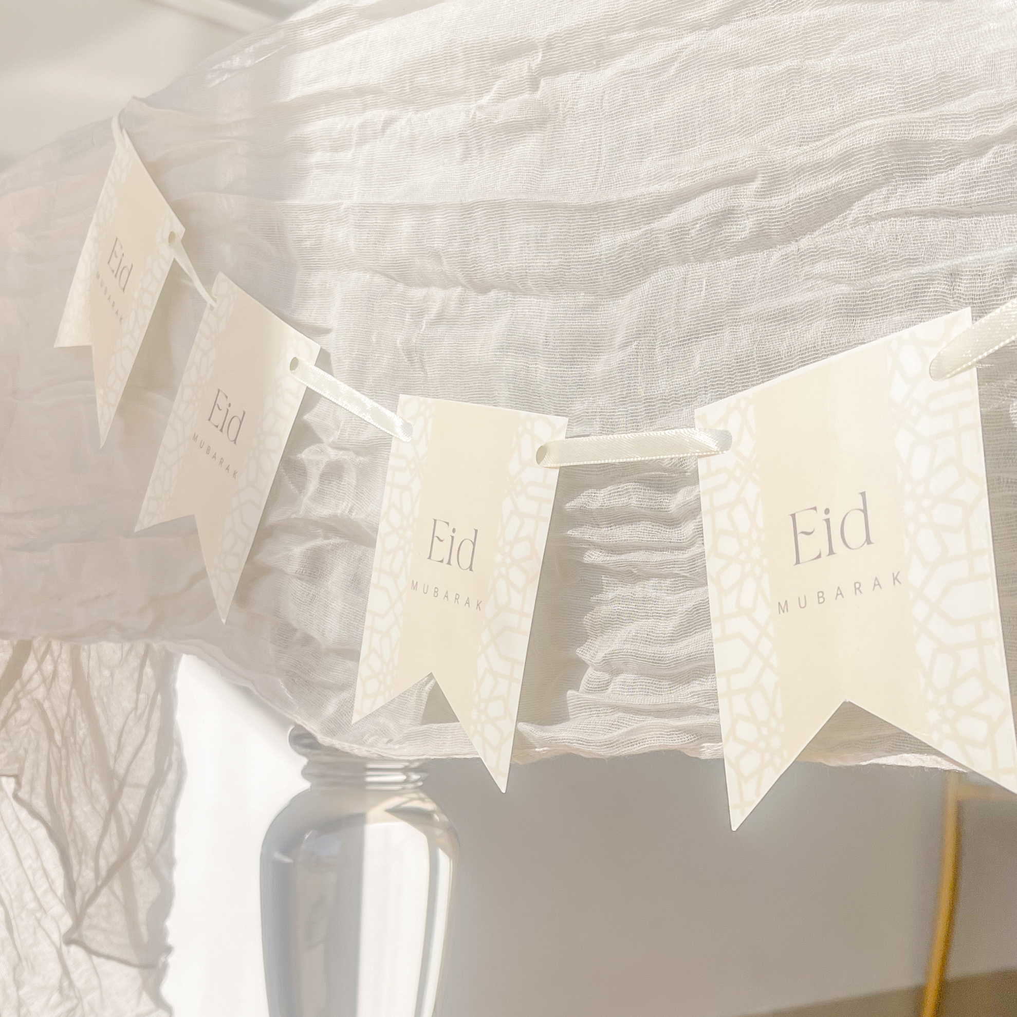 Apportez une touche de douceur à votre décoration avec ce lot de 2 guirlandes « Eid Mubarak » !