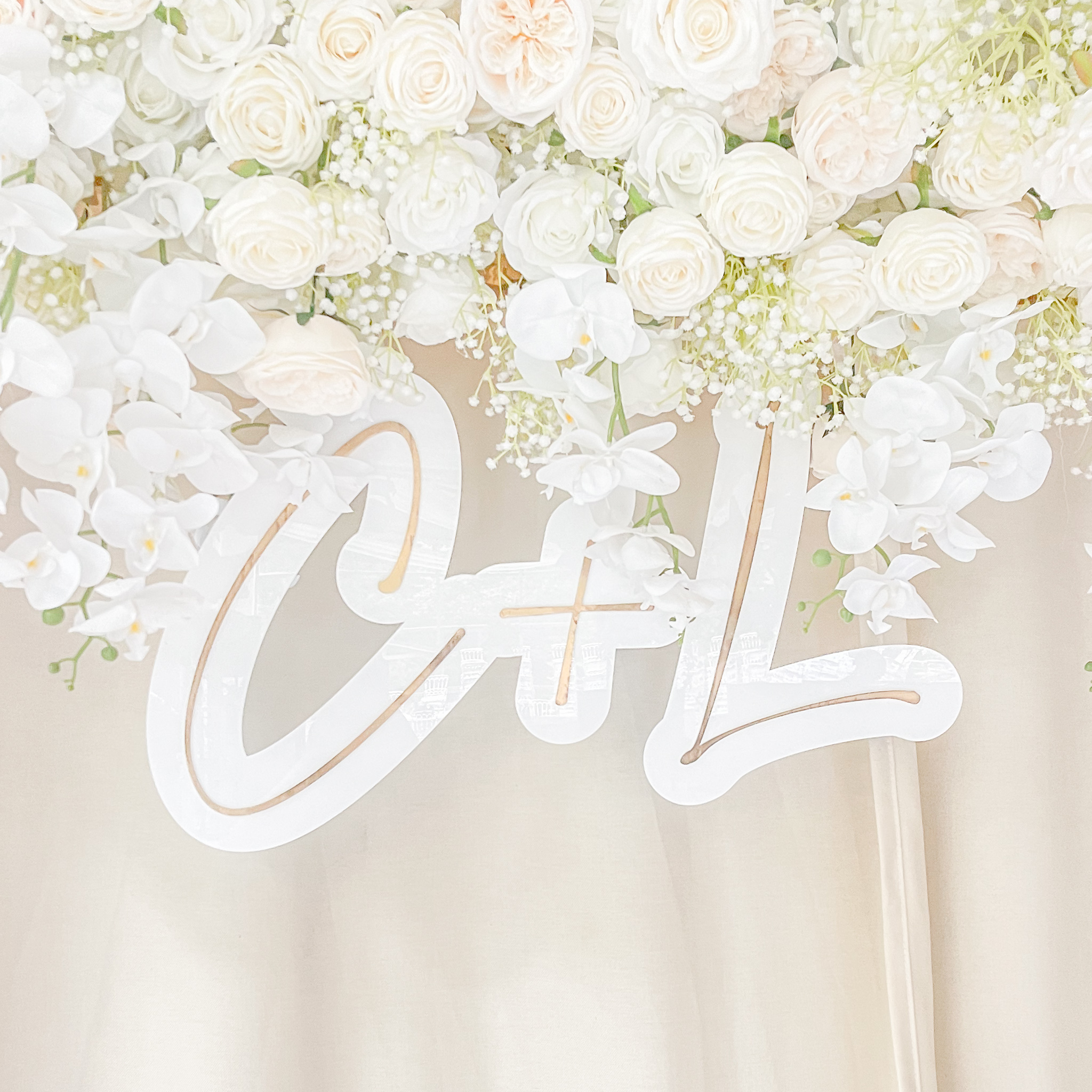 Initiales mariage en plexiglas  blanc brillant pour vos coins photo personnalisés.
