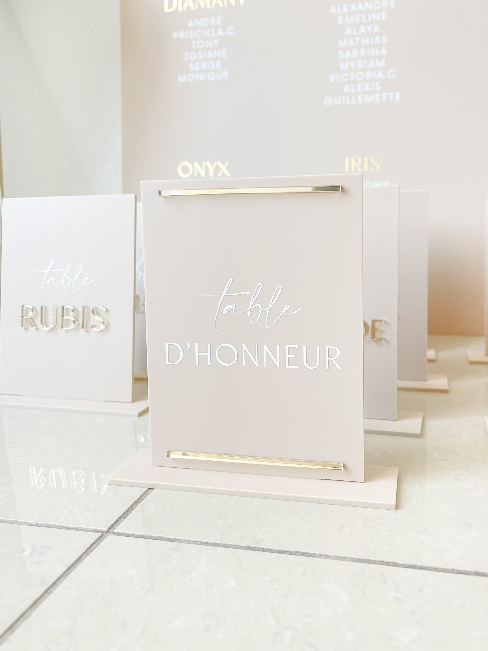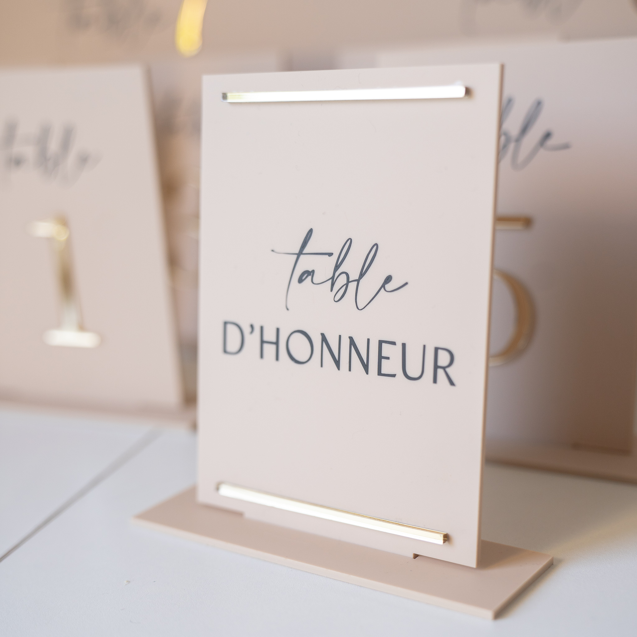 Ce marque de table d’honneur en plexiglas apportera une touche finale à votre décoration de table. Décoration table mariage. Signalétique mariage. plexiglas table d’honneur.