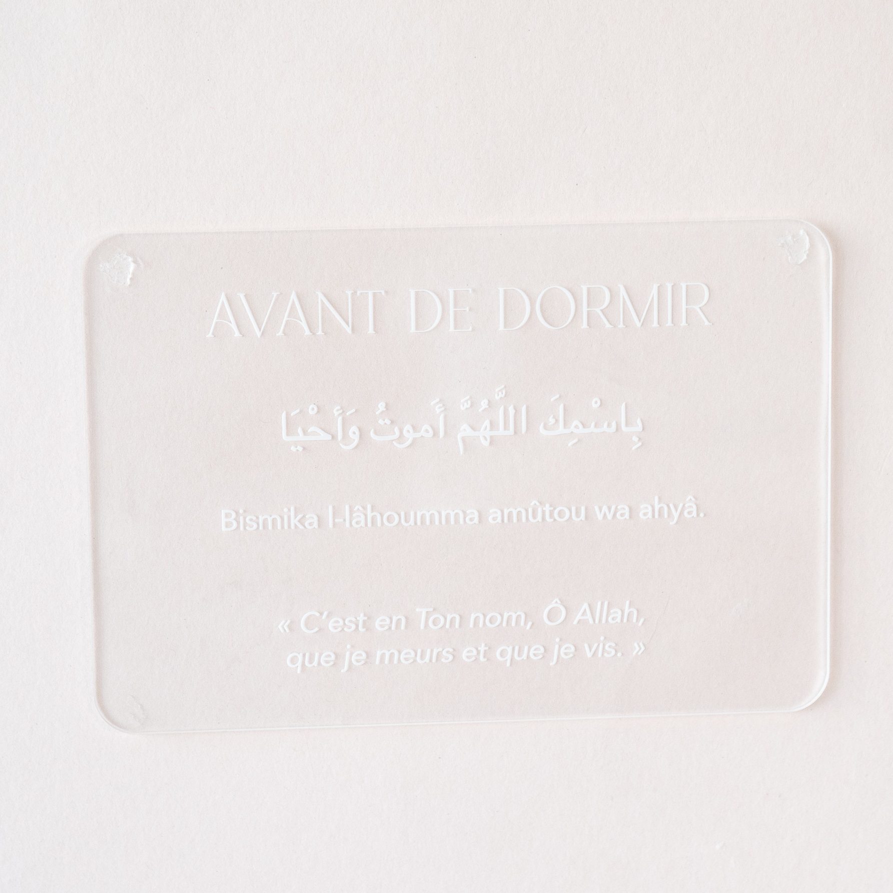Pancarte d’apprentissage en plexiglas gravé qui se mariera parfaitement avec votre intérieur. C’est un cadeau idéal pour votre famille ou vos amis musulmans.