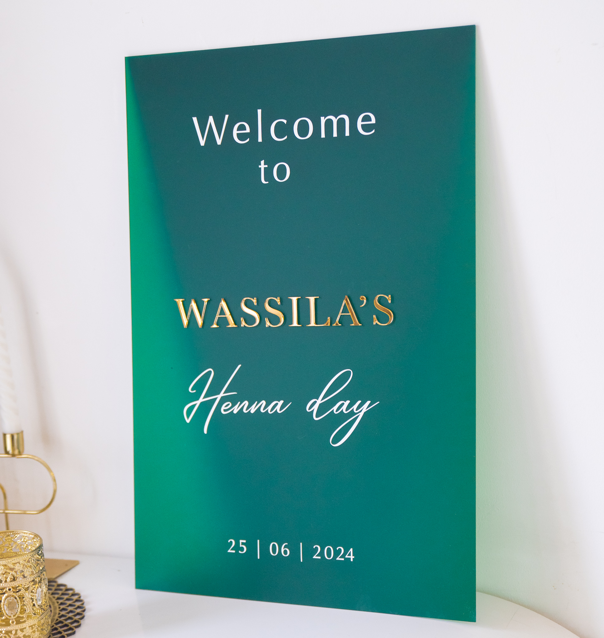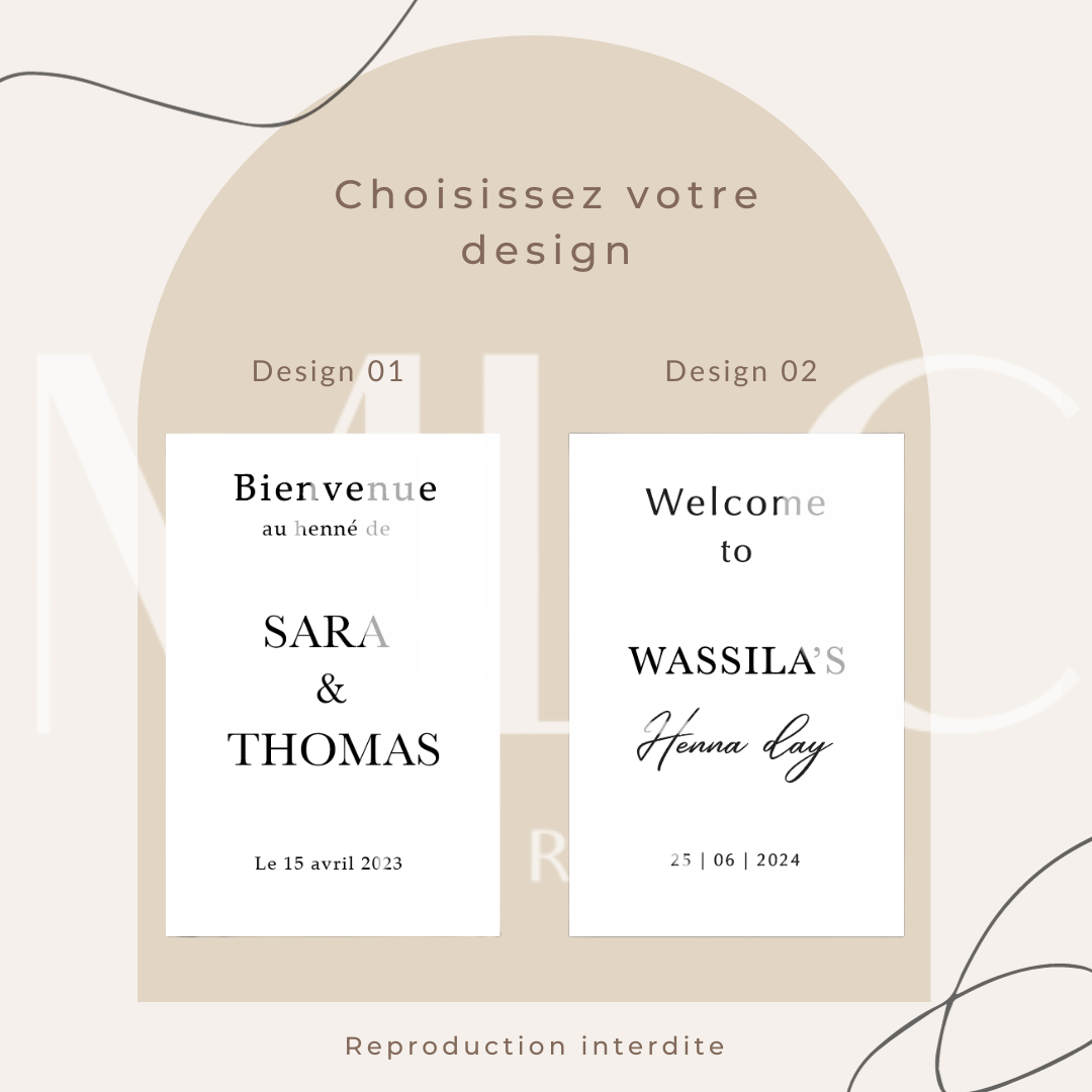 Panneau de bienvenue idéal pour une cérémonie du henné traditionnelle.