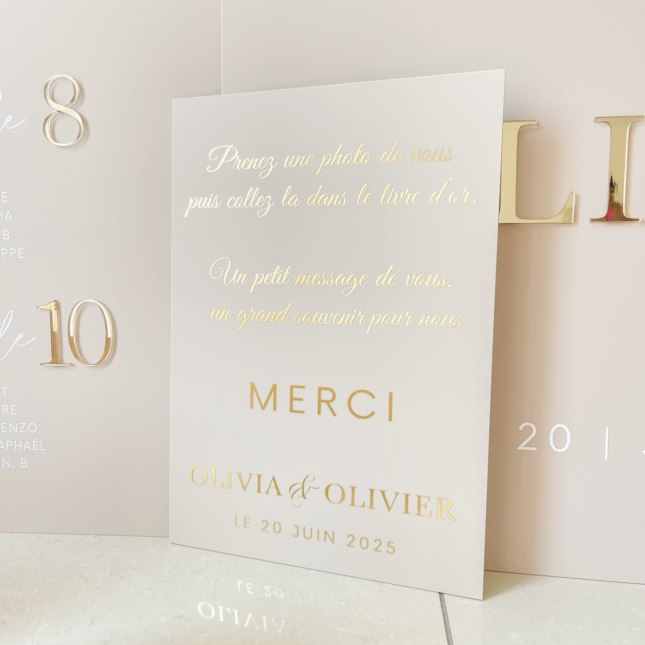 Vous pouvez le poser à côté de votre livre d’or ou autre selon le texte inscrit.