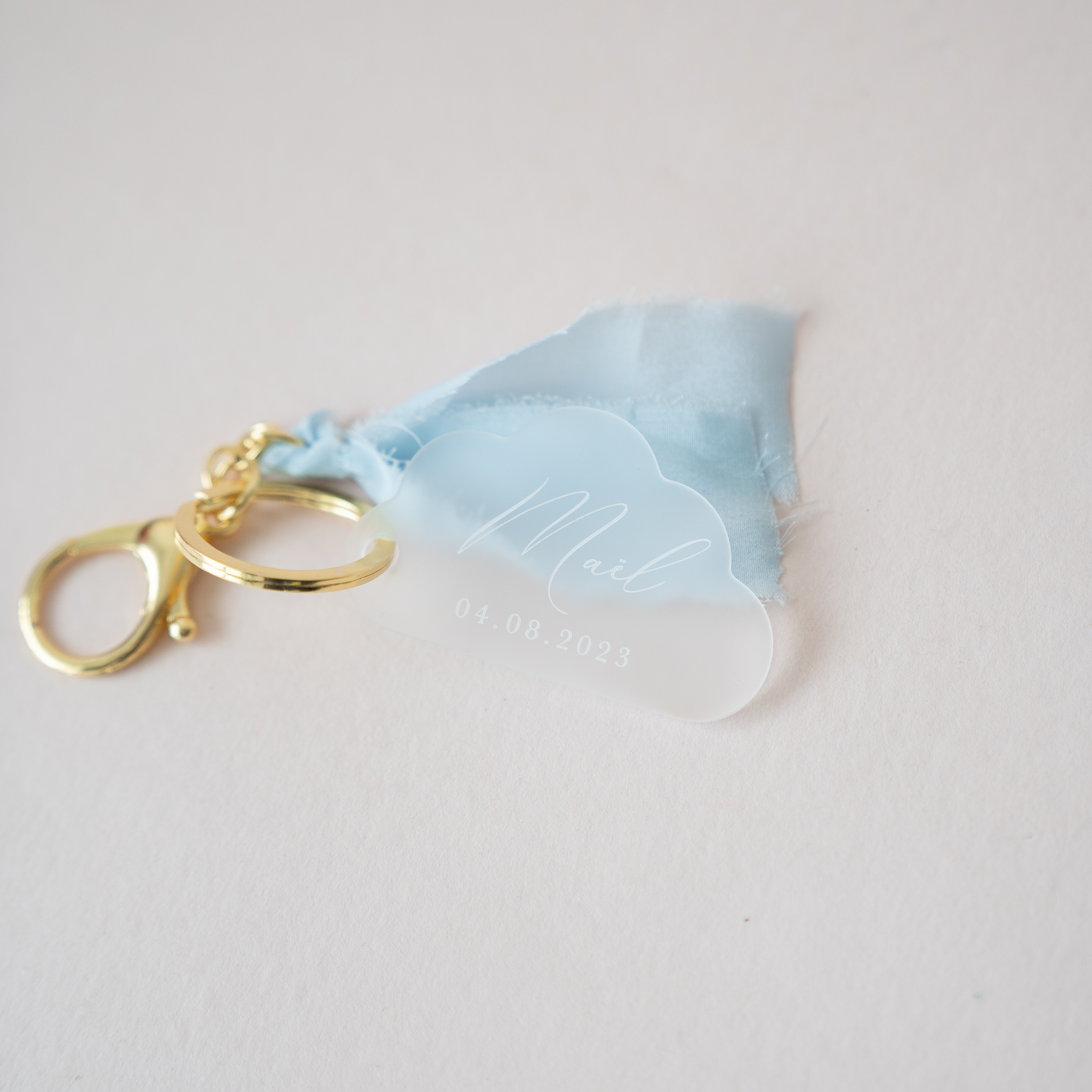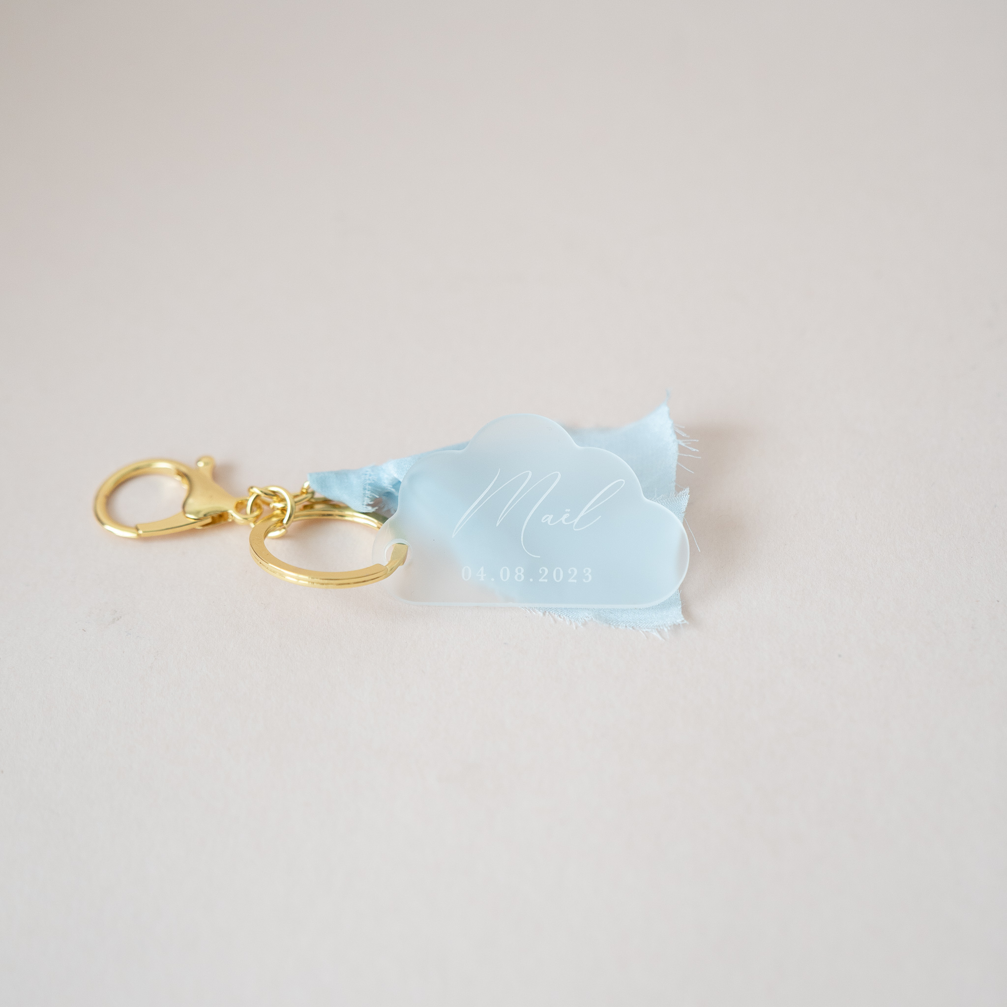 Porte clé DÉLICATESSE en plexiglas givré en forme de nuage. Idéal pour vos cadeaux invités.