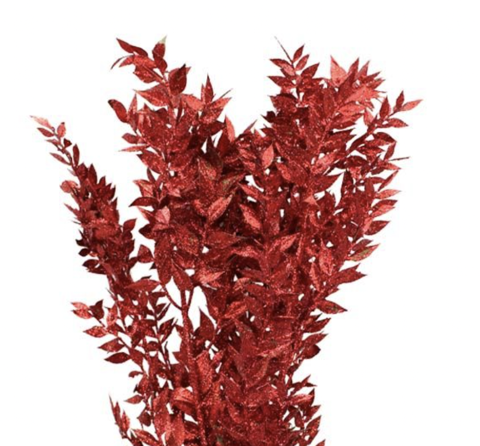 Botte de ruscus stabilisée rouge pailleté pour vos créations florales, et décoration de Noël.